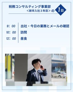 税務コンサルティング事業部社員〈新卒入社3年目〉の1日の流れをご紹介いたします!